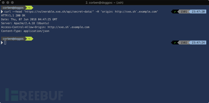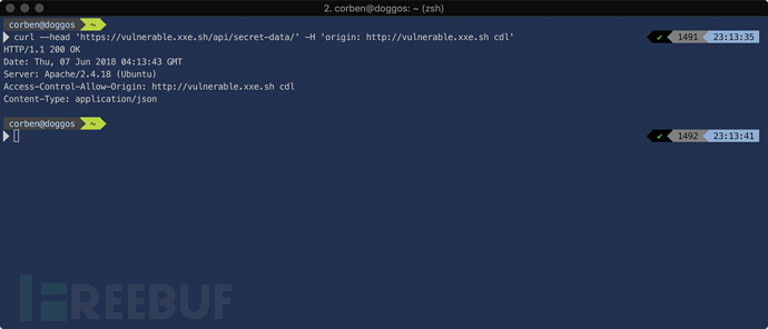这意味着攻击者可以发送以xxe.sh结尾的任意地址,并且可以跨域访问。