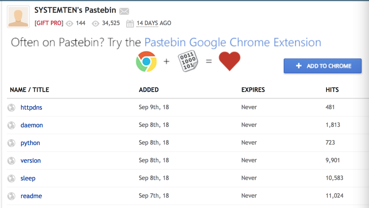 通过攻击者使用的 pastebin 站点的 URL 进行分析,发现使用的用户名为 SYSTEMTEN, 地址为 hxxps://pastebin.com/u/SYSTEMTEN