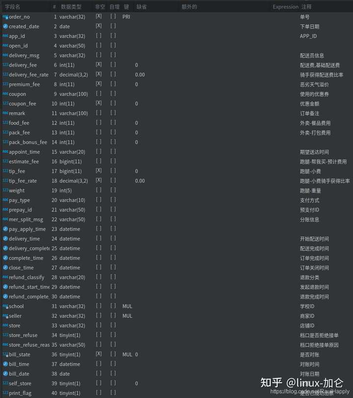 我们现在有一个订单表,表结构如下: