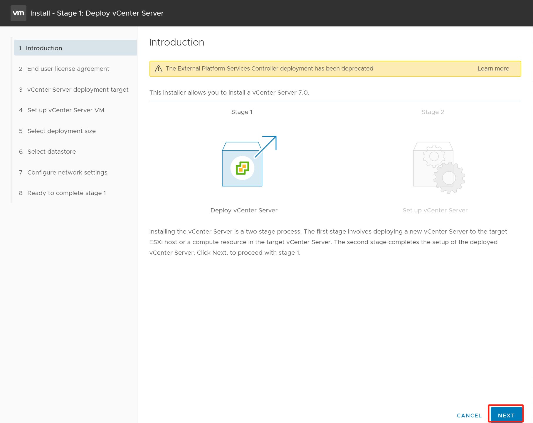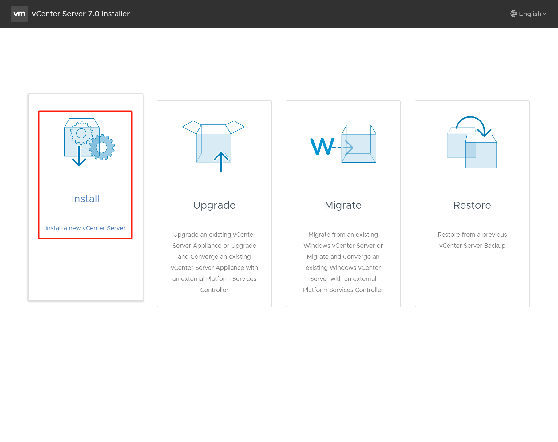 1.下载相应版本的Vcenter软件,之后进行安装【VMware-VCSA-all-7.0.0-15952498\vcsa-ui-installer\win32\install.exe】