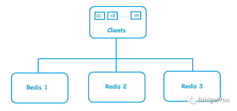 后来,我们系统中使用Redis的客户端越来越多,变成了这样: