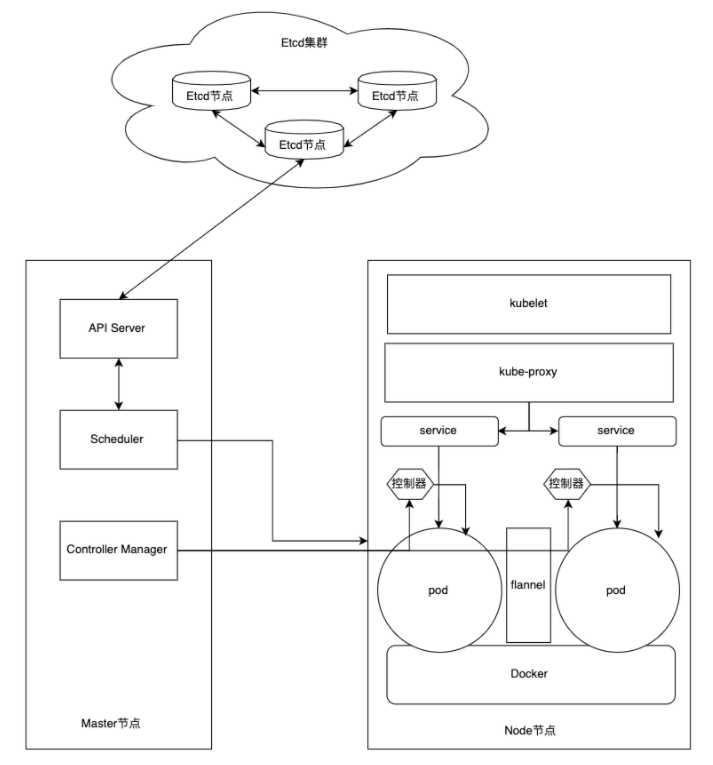Master节点主要由三个组件构成:API Server、Scheduler、Controller Manager,接下来我们逐一介绍一下这三个组件的各自的功能。