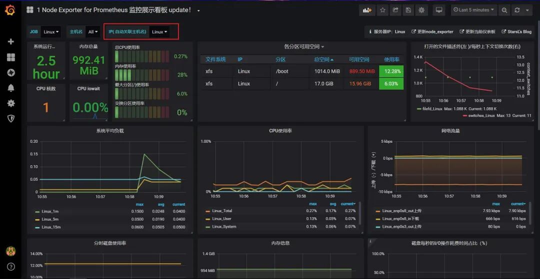 - 网络:出口流量、入口流量、TCP连接状态
