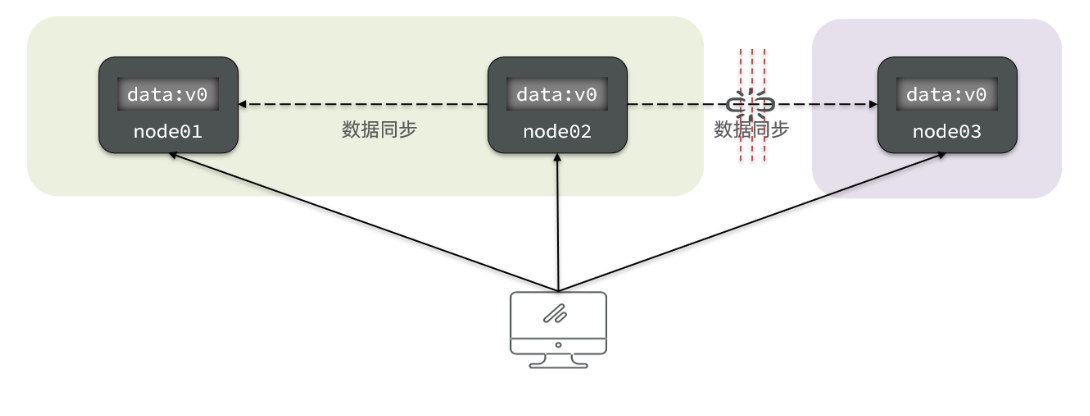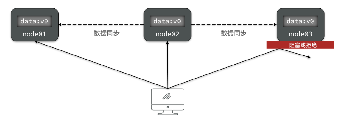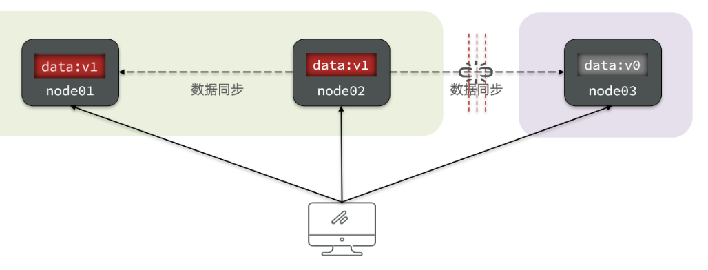 如果此时要保证可用性,就不能等待网络恢复,那node01、node02与node03之间就会出现数据不一致。