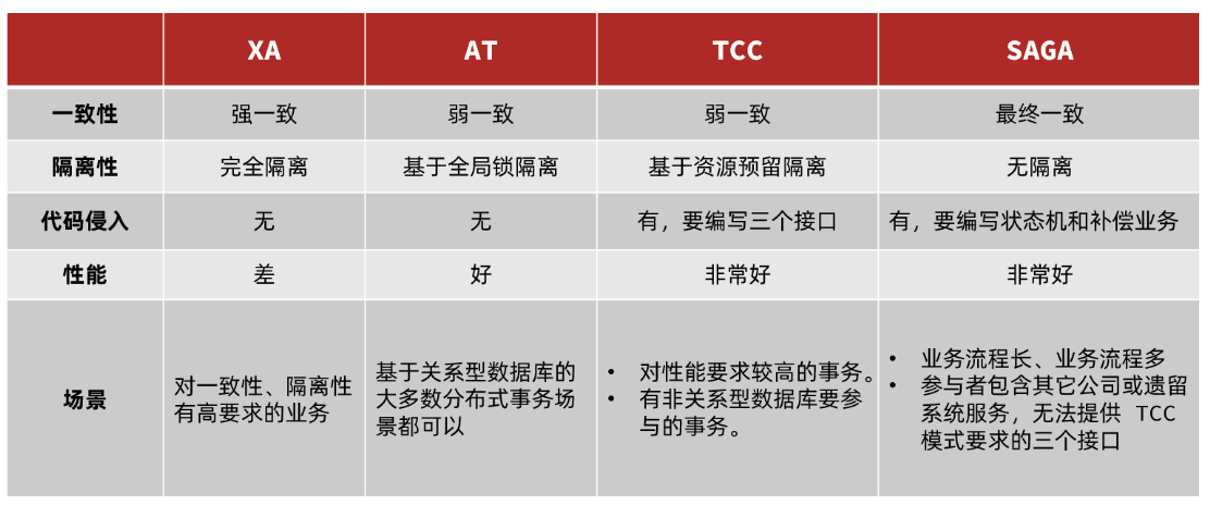 XA模式:强一致性分阶段事务模式,牺牲了一定的可用性,无业务侵入