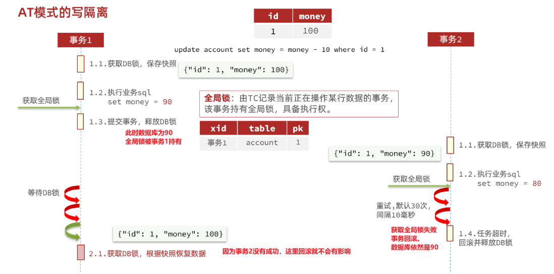 AT模式:最终一致的分阶段事务模式,无业务侵入,也是Seata的默认模式