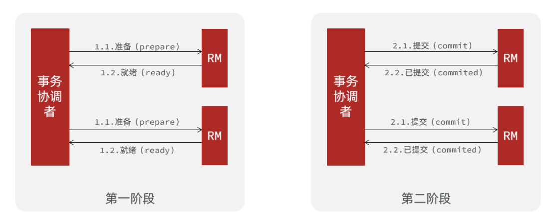 XA是规范,目前主流数据库都实现了这种规范,实现的原理都是基于两阶段提交。