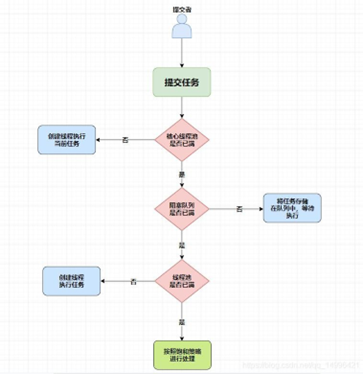 - 线程池首先判断核心线程池里的线程是否已经满了。如果不是,则创建一个新的工作线程来执行任务。否则进入