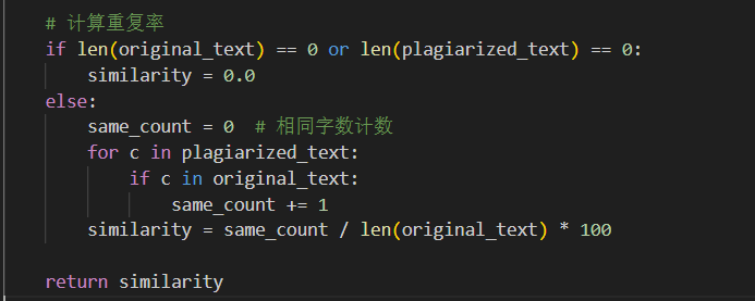 - 我的思路,比较两文件的重复字数,将重复字数除以原论文字数为重复率。