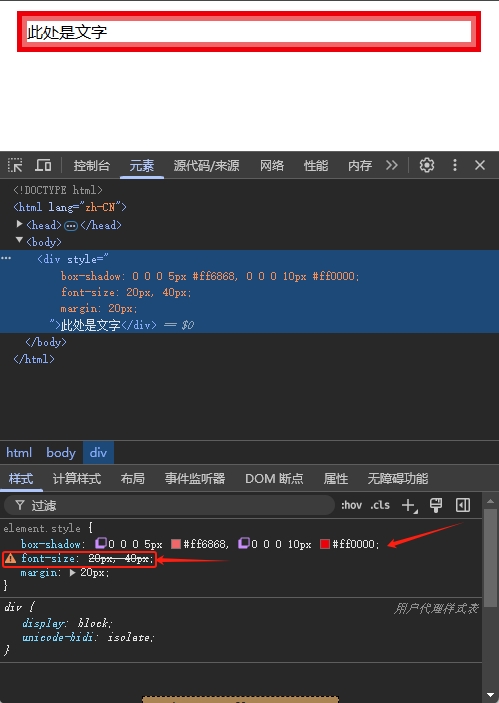 原因也很简单,font-size 仅支持单属性值,设置多个值被浏览器判断为属性值无效了。