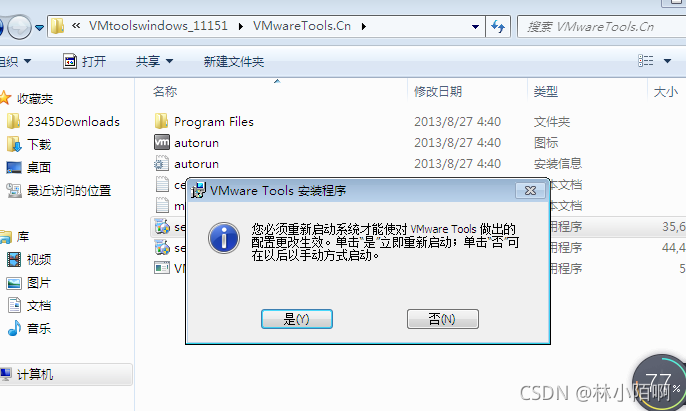 9.重启之后如果显示值这样的说明安装成功,出现根性VMware tools 即可