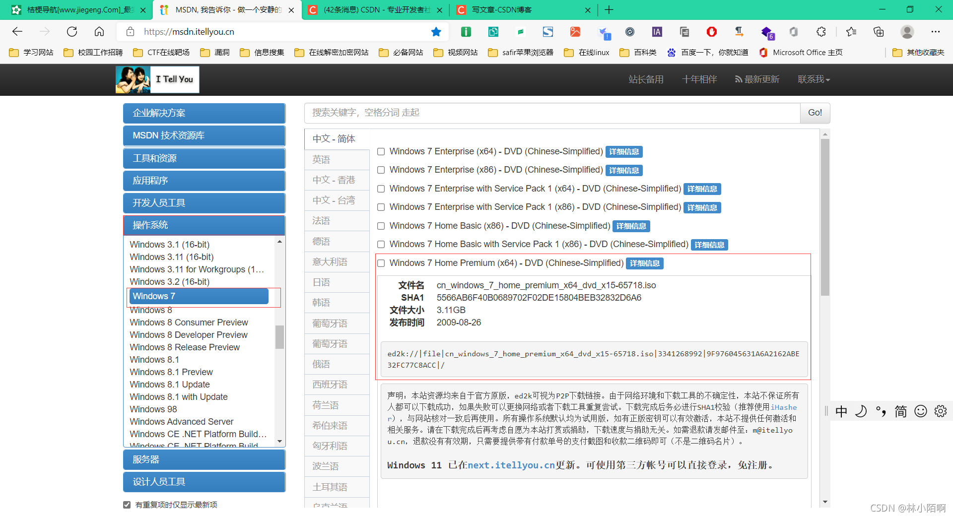 附Windows 7下载链接1:MSDN, 我告诉你 - 做一个安静的工具站 (itellyou.cn)