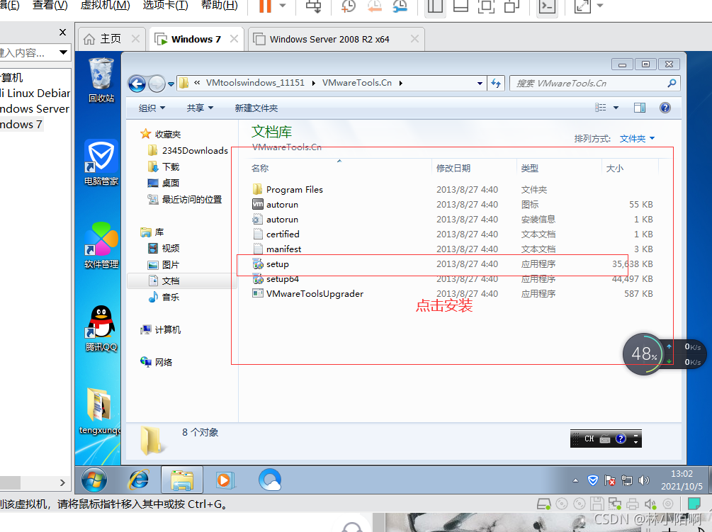 注意:安装成功之后从虚拟机向主机复制文件时可以按住ctrl+alt更方便