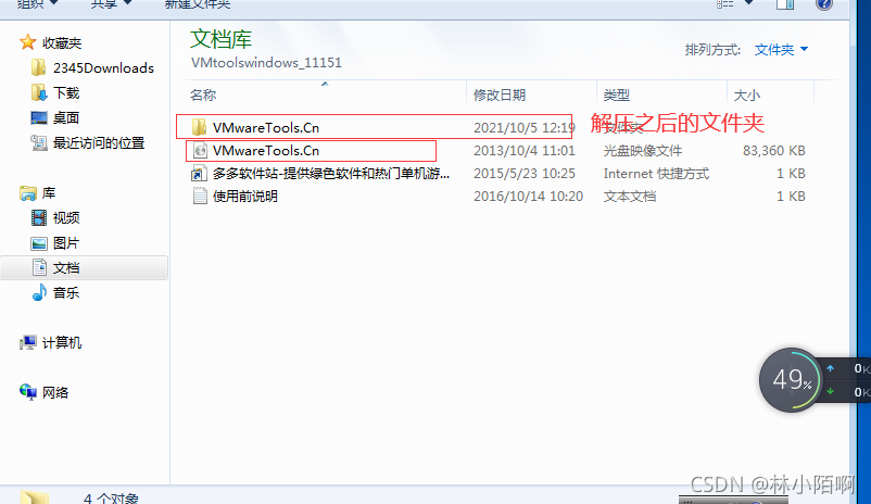 4.将下载的VMwaretools镜像文件解压,如图所示