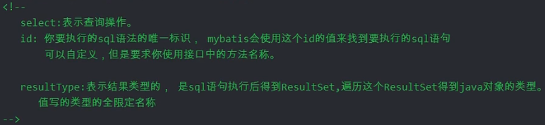 <?xml version="1.0" encoding="UTF-8" ?> <!DOCTYPE configuration PUBLIC "-//mybatis.org//DTD Config 3.0//EN" "http://mybatis.org/dtd/mybatis-3-config.dtd"> <configuration> <settings> <setting name="logImpl" value="STDOUT_LOGGING"/> </settings> <!-- 环境配置:数据库的连接信息 environment:数据库的信息配置 default:和某个environment的id值必须一致,告诉mybatis要使用哪个数据库 --> <environments default="myDev"> <environment id="myDev"> <!-- id:环境的名称,具有唯一性 --> <!-- transactionManager:mybatis的事务类型 type:表示使用jdbc中的Connection对象的commit,rollback做事务处理 --> <transactionManager type="JDBC"/> <!-- dataSource:表示数据源,用来连接数据库 type:数据源的类型,POOLED:表示使用连接池 --> <dataSource type="POOLED"> <property name="driver" value="com.mysql.jdbc.Driver"/> <property name="url" value="jdbc:mysql://localhost:3306/bjpowernode"/> <property name="username" value="root"/> <property name="password" value="root"/> </dataSource> </environment> </environments> <!-- mappers:sql映射文件的位置 mapper:一个mapper标签指定一个文件的位置 从类路径(target/classes)开始的路径信息 注意:target/classes目录下要有ProvinceDao.xml文件存在 --> <mappers> <mapper resource="com/bjpowernode/dao/ProvinceDao.xml"/> </mappers> </configuration>