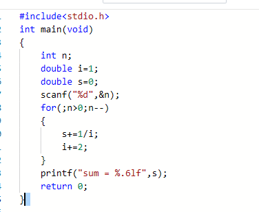 内容描述:本题要求编写程序,计算序列 1 + 1/3 + 1/5 + ... 的前N项之和。