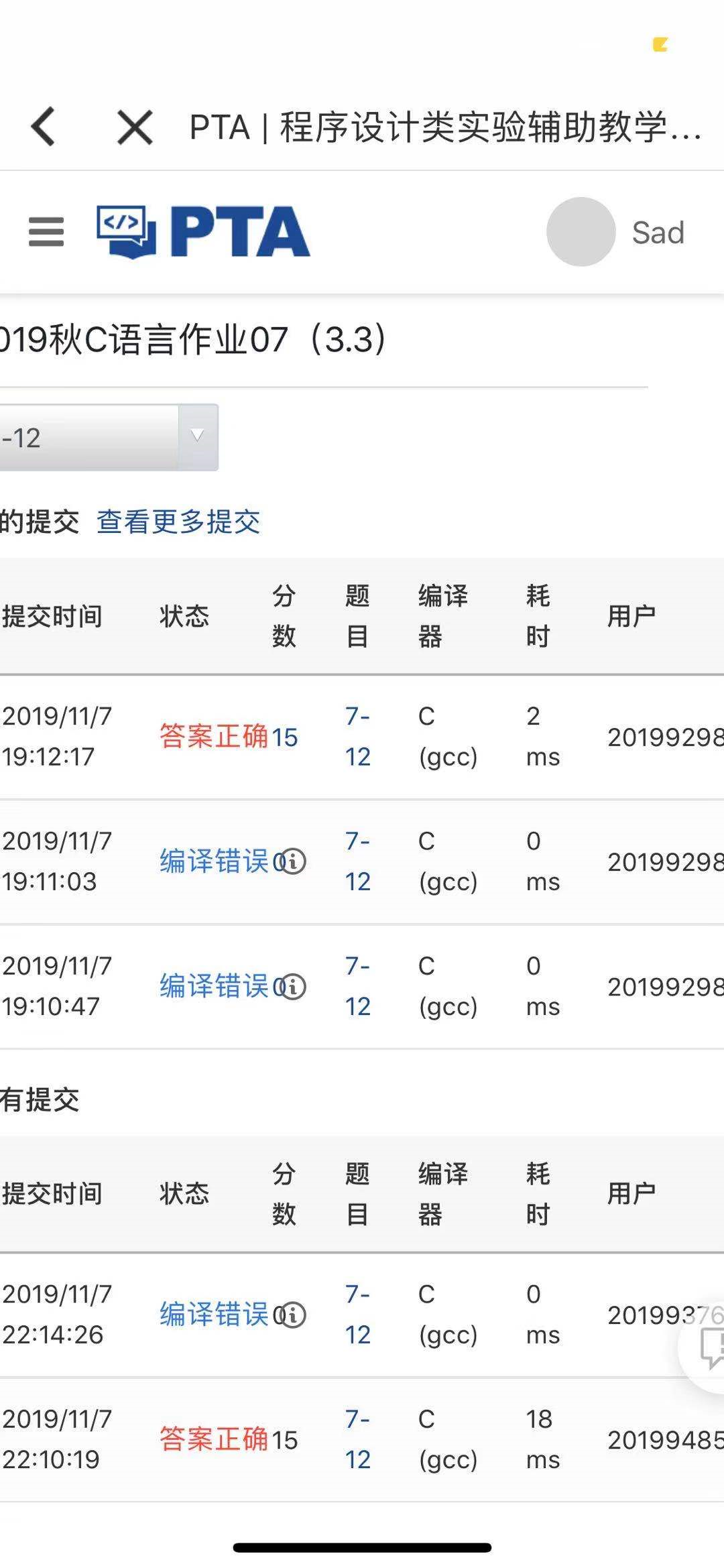 1.1.4PTA提交列表及说明