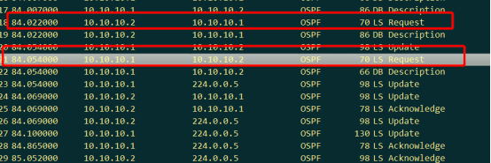 当通过DD报文知道对端的LSA后,状态变为Loading,路由器向邻居发送LSR请求LSA完整数据,对方通过LSU进行回应,LSU包括 LSA的完整信息,在收到LSU报文后,路由器发送LSack的LSR进行确认,DD报文是头部,LSU报文是完成LUA信息。