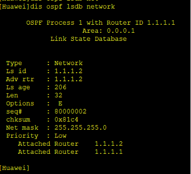 [Huawei-ospf-1-area-0.0.0.0]network 192.168.1.0 0.0.0.255