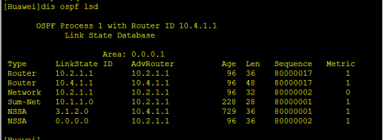 配置AREA1为 NSSA区域后查看 RC的ospf lsdb