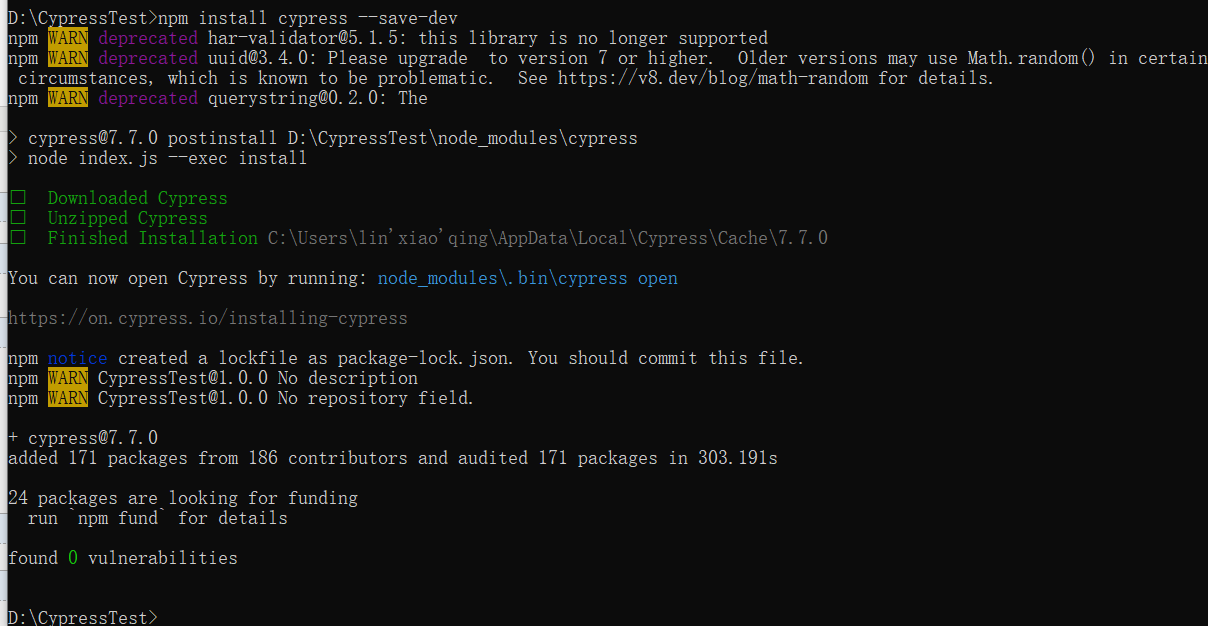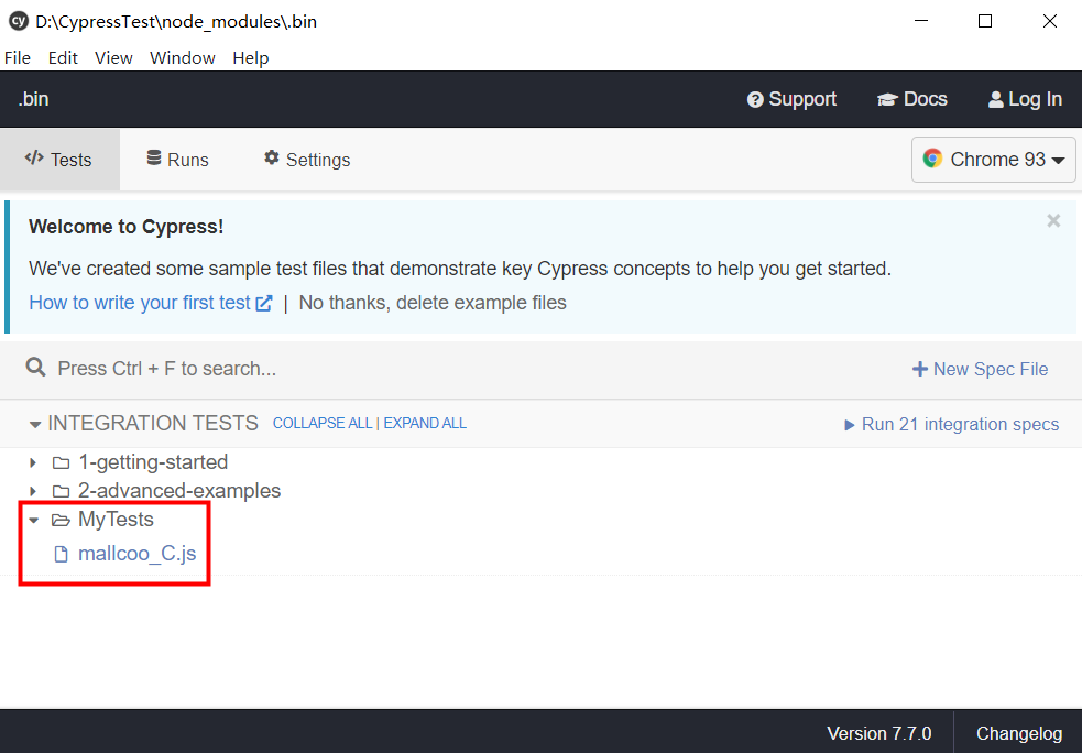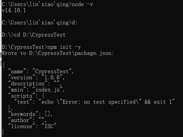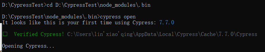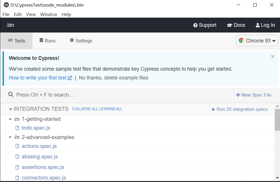 通过这种方式启动的是D:\CypressTest\cypress\integration路径下的js脚本,这种方式是正确的。