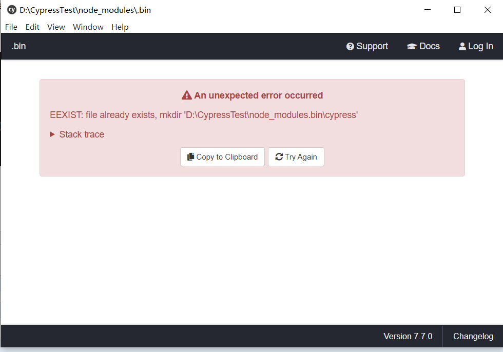 解决办法:就是删除下图中的cypress文件,然后点击启动失败图中的“Try Again”: