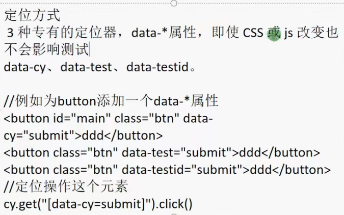 3种专有的定位器,data-*属性,即使css或js改变也不会影响测试;