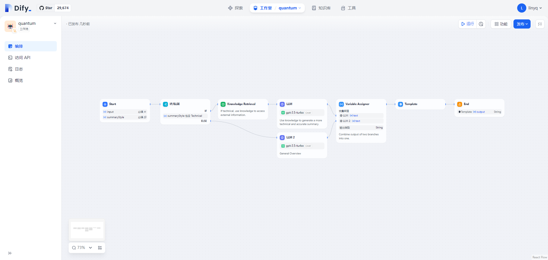国内开源的 dify 个人感觉在使用场景上非常舒服,下面就以 dify 为例进行搭建工作流
