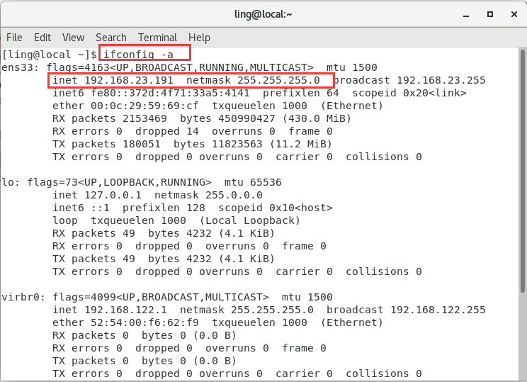 a. 查看Linux系统IP地址: