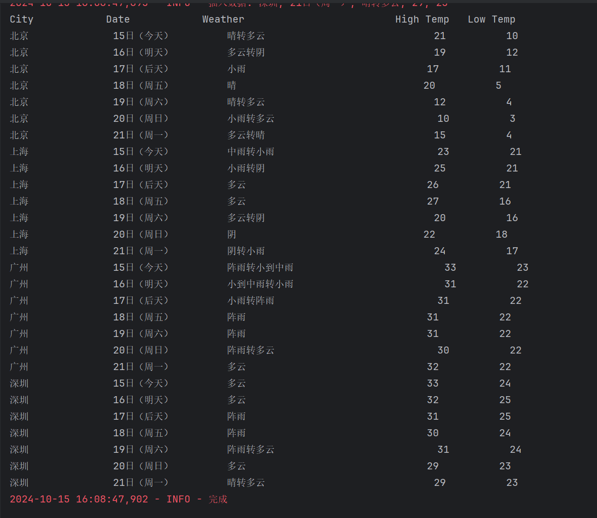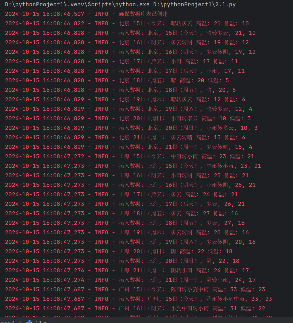 logging.info(f"插入数据: {city}, {date}, {weather}, {high_temp}, {low_temp}")