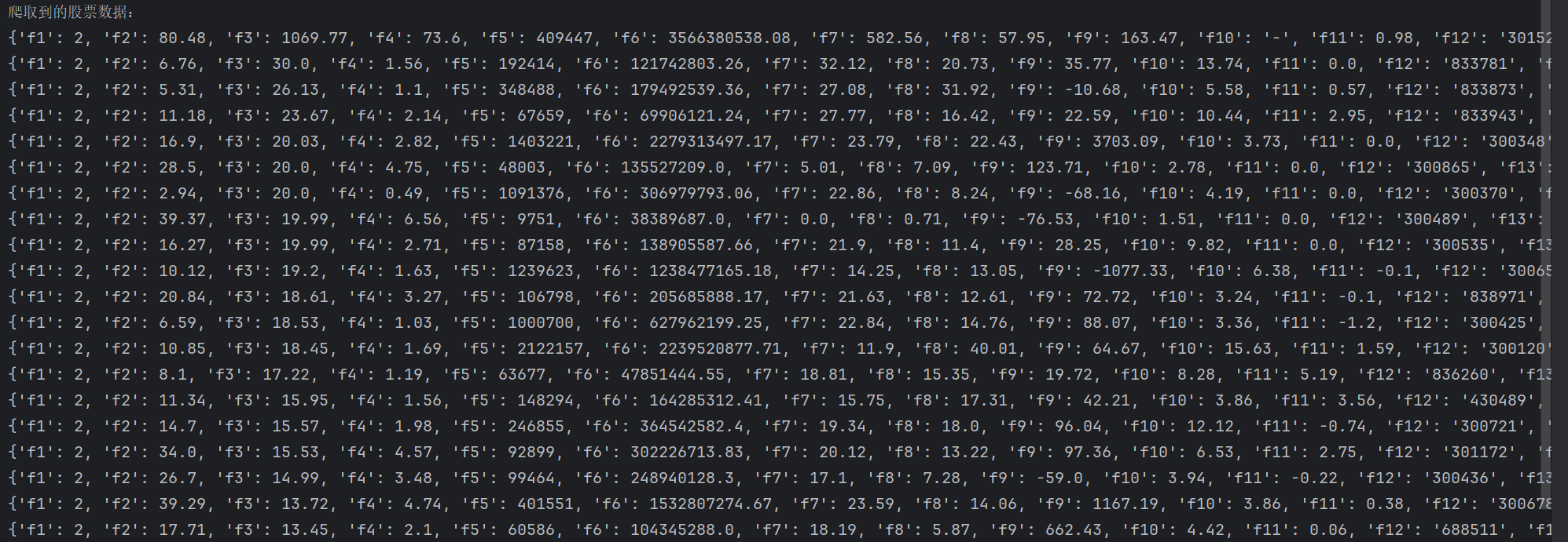 url = "https://18.push2.eastmoney.com/api/qt/clist/get?cb=jQuery112408425405289872392_1728984110482&pn=1&pz=20&po=1&np=1&ut=bd1d9ddb04089700cf9c27f6f7426281&fltt=2&invt=2&dect=1&wbp2u=|0|0|0|web&fid=f3&fs=m:0+t:6,m:0+t:80,m:1+t:2,m:1+t:23,m:0+t:81+s:2048&fields=f1,f2,f3,f4,f5,f6,f7,f8,f9,f10,f12,f13,f14,f15,f16,f17,f18,f20,f21,f23,f24,f25,f22,f11,f62,f128,f136,f115,f152&_=1728984110483"