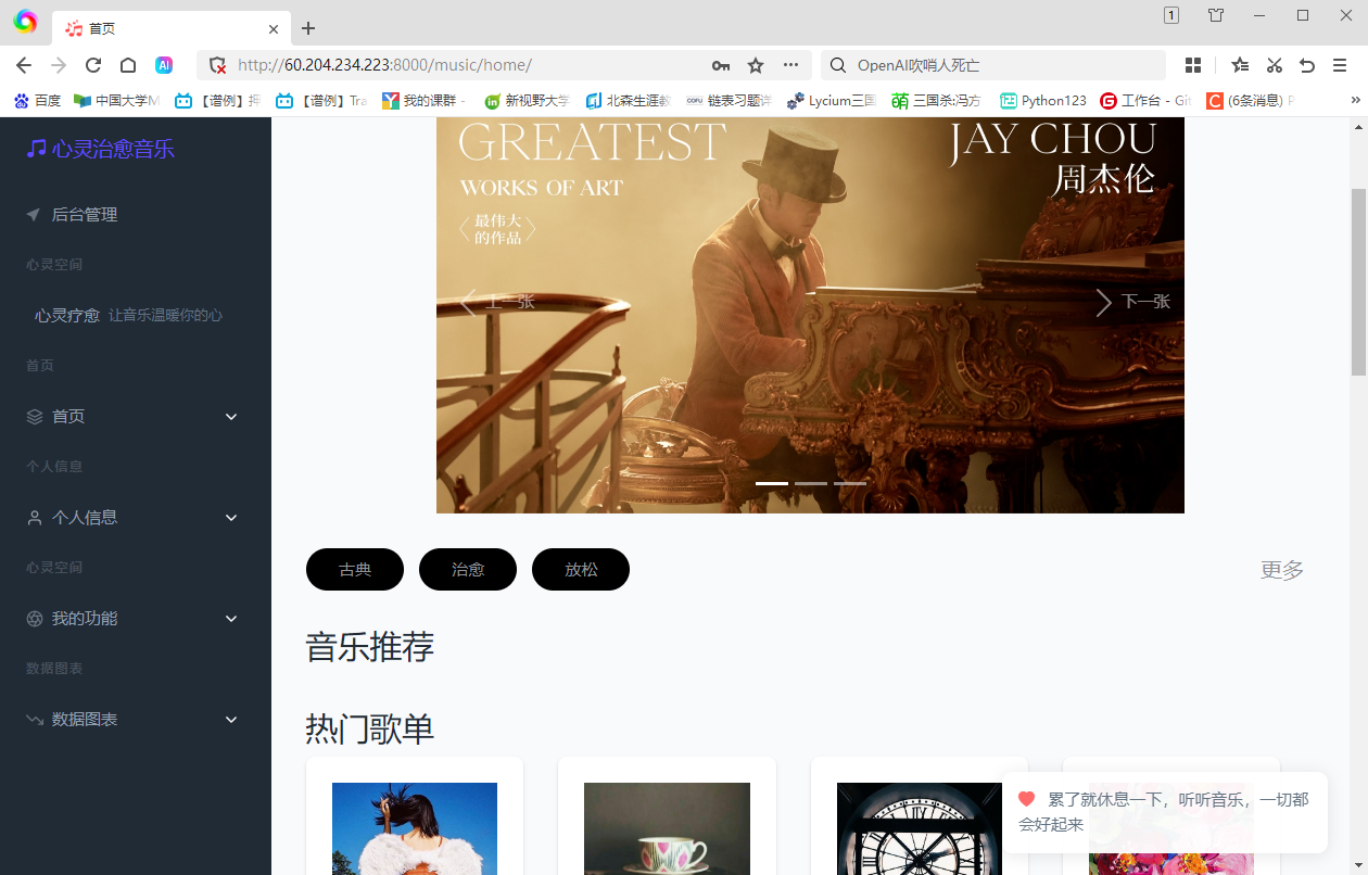 在参与开发“个性化音乐推荐系统”项目的过程中,我不仅加深了对Web开发技术的理解,还对智能推荐算法、数据处理以及用户需求有了更深刻的体会。以下是我在项目开发过程中的一些心得和体会。