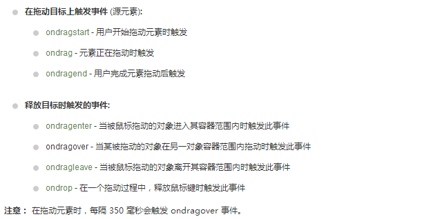 <img id="drag1" src="/i/w3school_banner.gif" draggable="true" ondragstart="drag(event)" /> //开始拖动的时候调用drag(event)