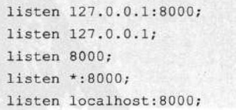 7.listen 监听端口,可以仅指定一个IP地址、一个端口或一个服务器名字作为地址