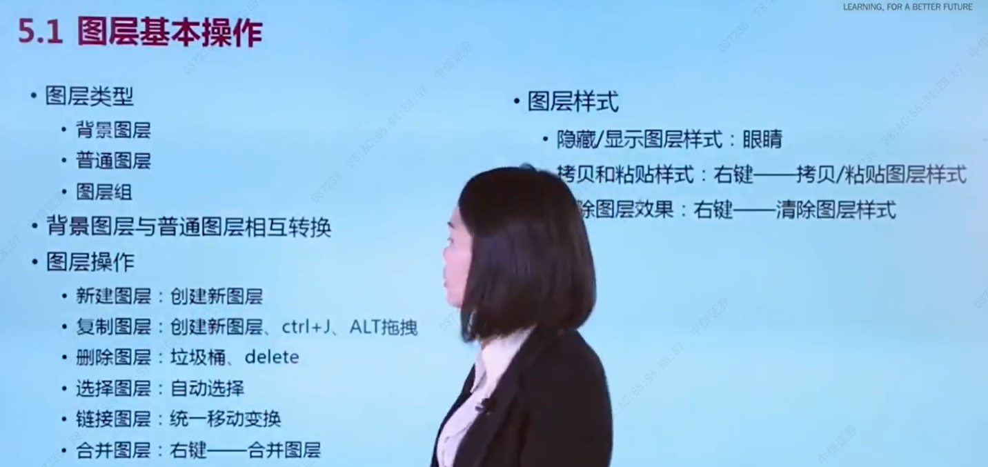 ctrl:变换角度; 【选中需要使用的图层,在右边的图层区】【点击右边的略缩图层,可在左边的工作区出现蚂蚁线,ctrl + d,取消蚂蚁线】