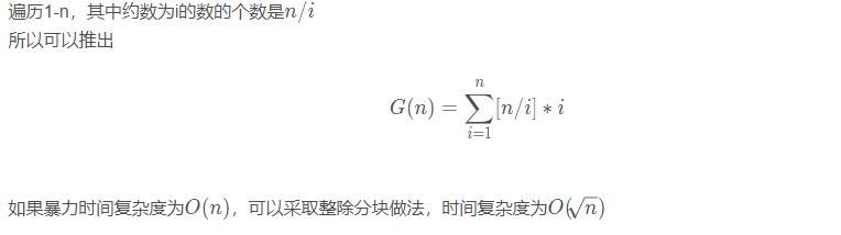 小G定义了两个函数F(n)为n的约数和,G(n)为F(1)+F(2)+...+F(n-1)+F(n)