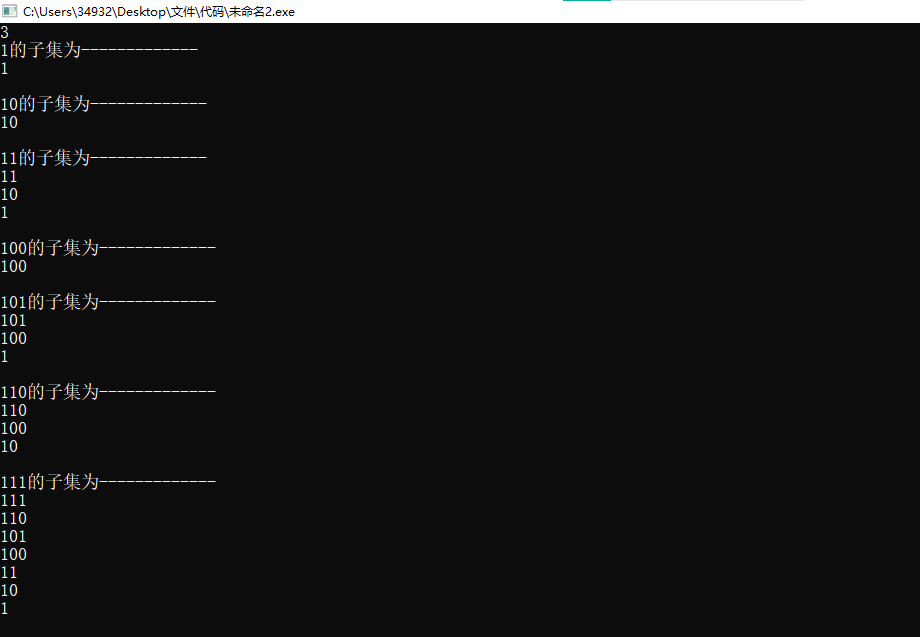 举个例子就是这个就是求3的子集的子集,然后111为3的一个子集,而子集的子集