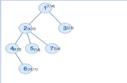 做完dfs序之后每一个节点都有一个唯一的标记: