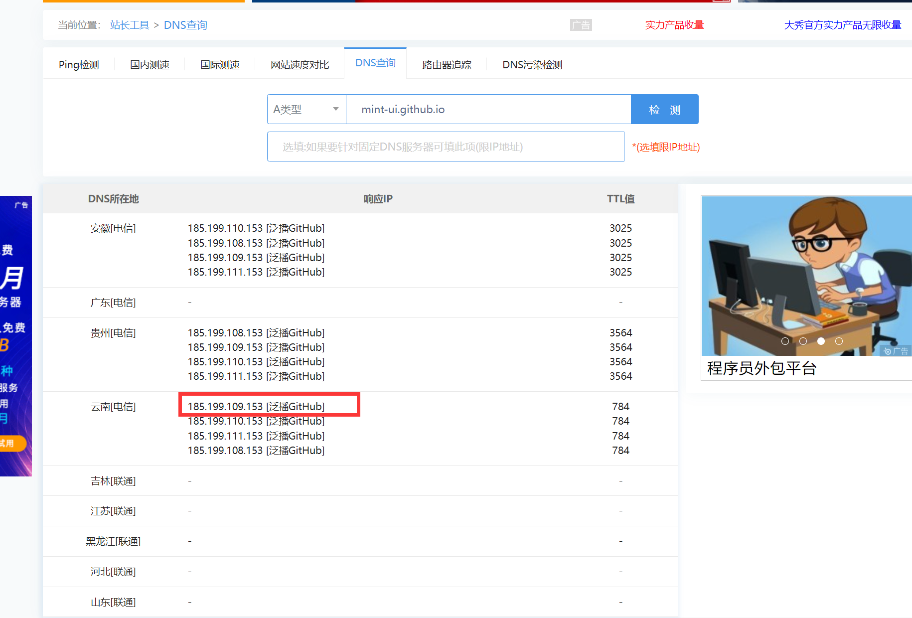 第一步:点击下方前往“站长工具”查询对应网址youzan.github.io的DNS