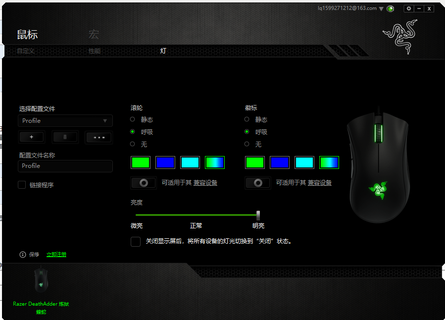 第六步 去邮箱点击Razer推送的验证链接,验证成功后就可以使用该账号信息登录刚才安装好的雷云程序,设置鼠标的灯光颜色、宏了!