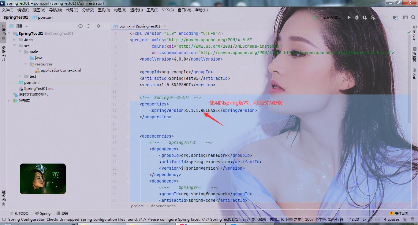 <!-- Spring统一版本号 --> <properties> <springVersion>5.1.1.RELEASE</springVersion> </properties> <dependencies> <!-- Spring表达式 --> <dependency> <groupId>org.springframework</groupId> <artifactId>spring-expression</artifactId> <version>${springVersion}</version> </dependency> <dependency> <!-- Spring核心 --> <groupId>org.springframework</groupId> <artifactId>spring-core</artifactId> <version>${springVersion}</version> </dependency> <dependency> <!-- Spring实体 --> <groupId>org.springframework</groupId> <artifactId>spring-beans</artifactId> <version>${springVersion}</version> </dependency> <dependency> <!-- Spring容器 --> <groupId>org.springframework</groupId> <artifactId>spring-context</artifactId> <version>${springVersion}</version> </dependency> </dependencies>