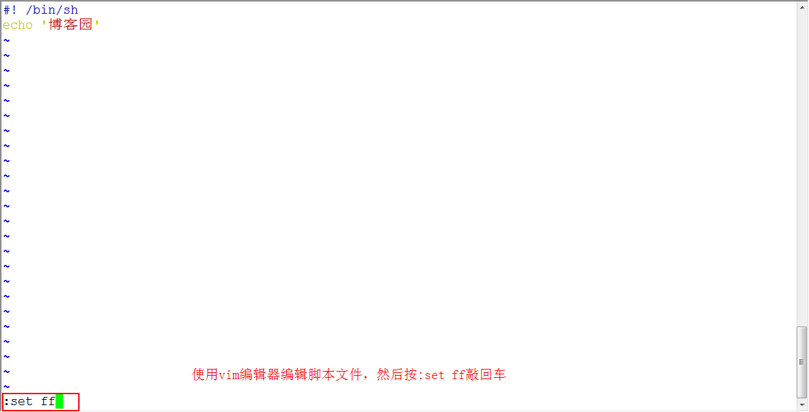 当执行:set ff或者:set fileformat会出现fileformat=unix或者是fileformat=dos