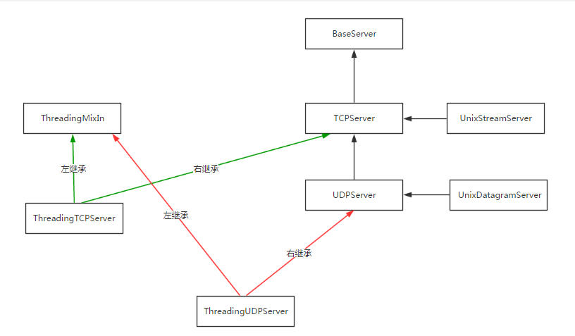 查找属性的顺序:ThreadingTCPServer->ThreadingMixIn->TCPServer->BaseServer