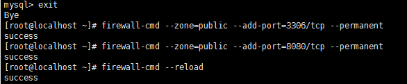 [root@localhost ~]# firewall-cmd --zone=public --add-port=3306/tcp --permanent