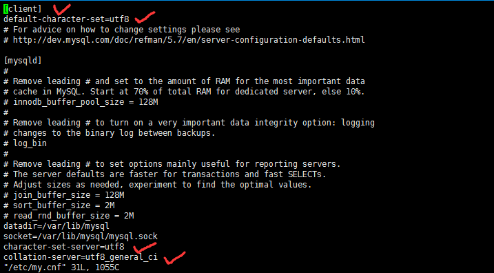 因此我们先退出mysql,然后再到、etc目录下的my.cnf文件下修改一下文件内容