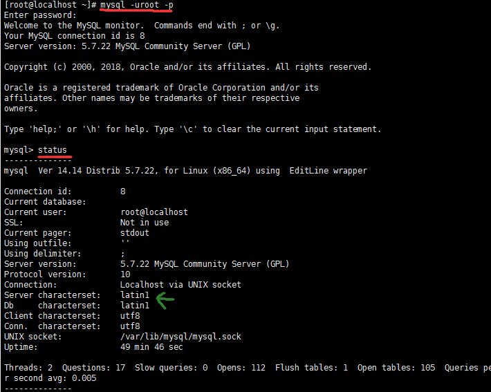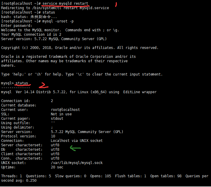 保存更改后的my.cnf文件后,重启下mysql,然后输入status再次查看,你就会发现变化啦