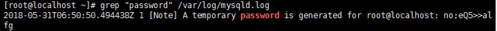 此时MySQL已经开始正常运行,不过要想进入MySQL还得先找出root用户的密码,通过如下命令可以在日志文件中找出密码: