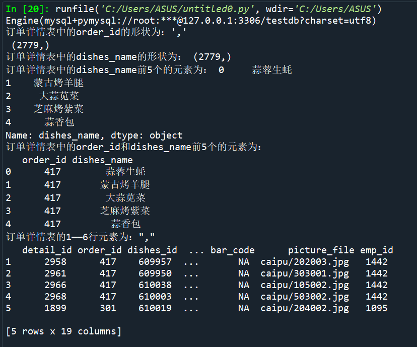 print("订单详情表中的order_id和dishes_name前5个的元素为:","\n",orderDish)